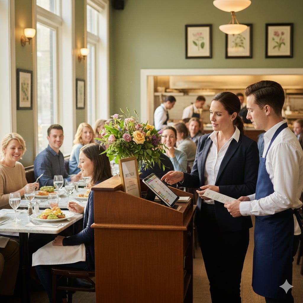 Every decision I made during brunch came back to that principle. When I had to choose between seating another table or helping a server who was drowning, I helped the server. When I had to choose between filling the dining room or protecting ticket times, I protected ticket times.