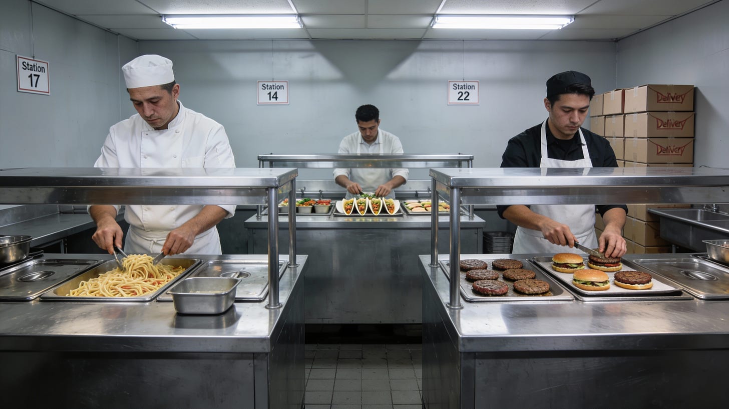 A shared kitchen space in a ghost kitchen facility handled dozens of virtual brands. A single cook prepared food for Italian pasta, then burgers, then tacos, all for different virtual restaurant brands operating out of the same location. Same workspace. Same equipment. Same hands. Different logos on the delivery apps.